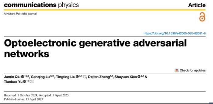 本網訊(物理與材料學院)近日,我校物理與材料學院于天寶教授帶領的微納光學團隊與信息工程學院劉婷婷副教授合作,將光計算與人工智能交叉結合,提出基于光電協同計算架構的生成模型——光電生成對抗網絡(OE-GAN),實現了復雜生成任務的高效處理,為突破生成式人工智能的算力與能效瓶頸提供了創新解決方案。該成果以“Optoelectronic generative adversarial networks”為題發表在Nature旗下期刊Communications Physics上。隨著人工智能生成內容(...
