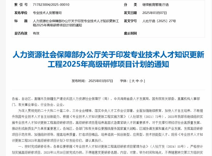 本網訊(繼續教育學院)近日,人力資源社會保障部辦公廳發布《關于印發專業技術人才知識更新工程2025年高級研修項目計劃的通知》 ,我校繼續教育學院申報的《人工智能技術賦能醫療產業高質量發展》《智能制造技術賦能有色金屬產業綠色發展》兩個研修項目成功獲批,納入國家專業技術人才知識更新工程2025年高級研修項目計劃。作為國家級的高層次人才培養平臺,專業技術人才知識更新工程高級研修項目聚焦國家戰略性新興產業和關鍵領域,...