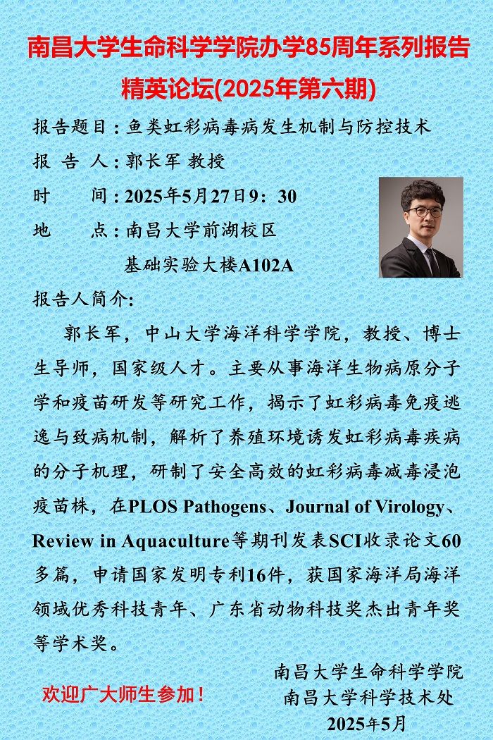 南昌大學生命科學學院辦學85周年系列報告精英論壇(2025年第六期)